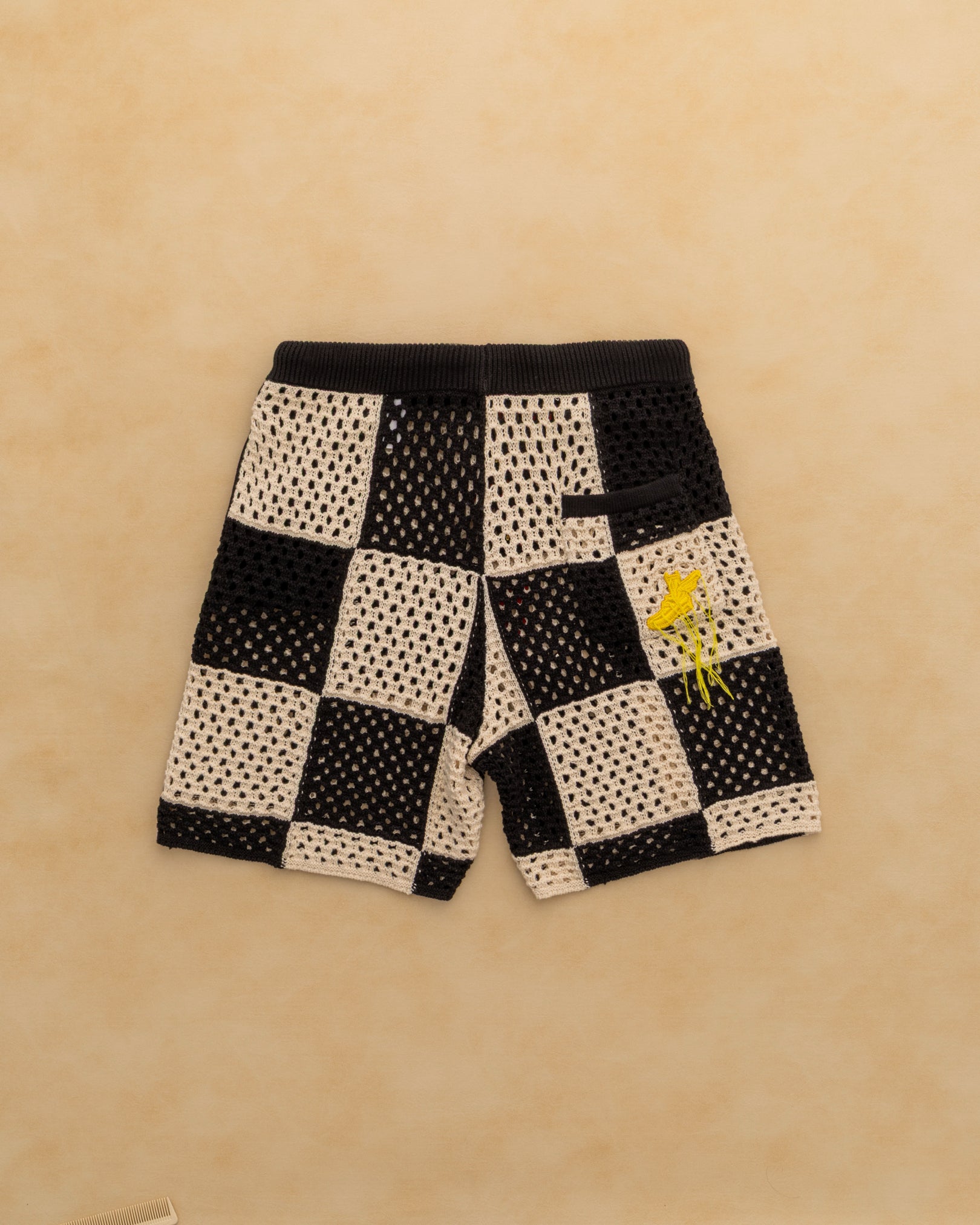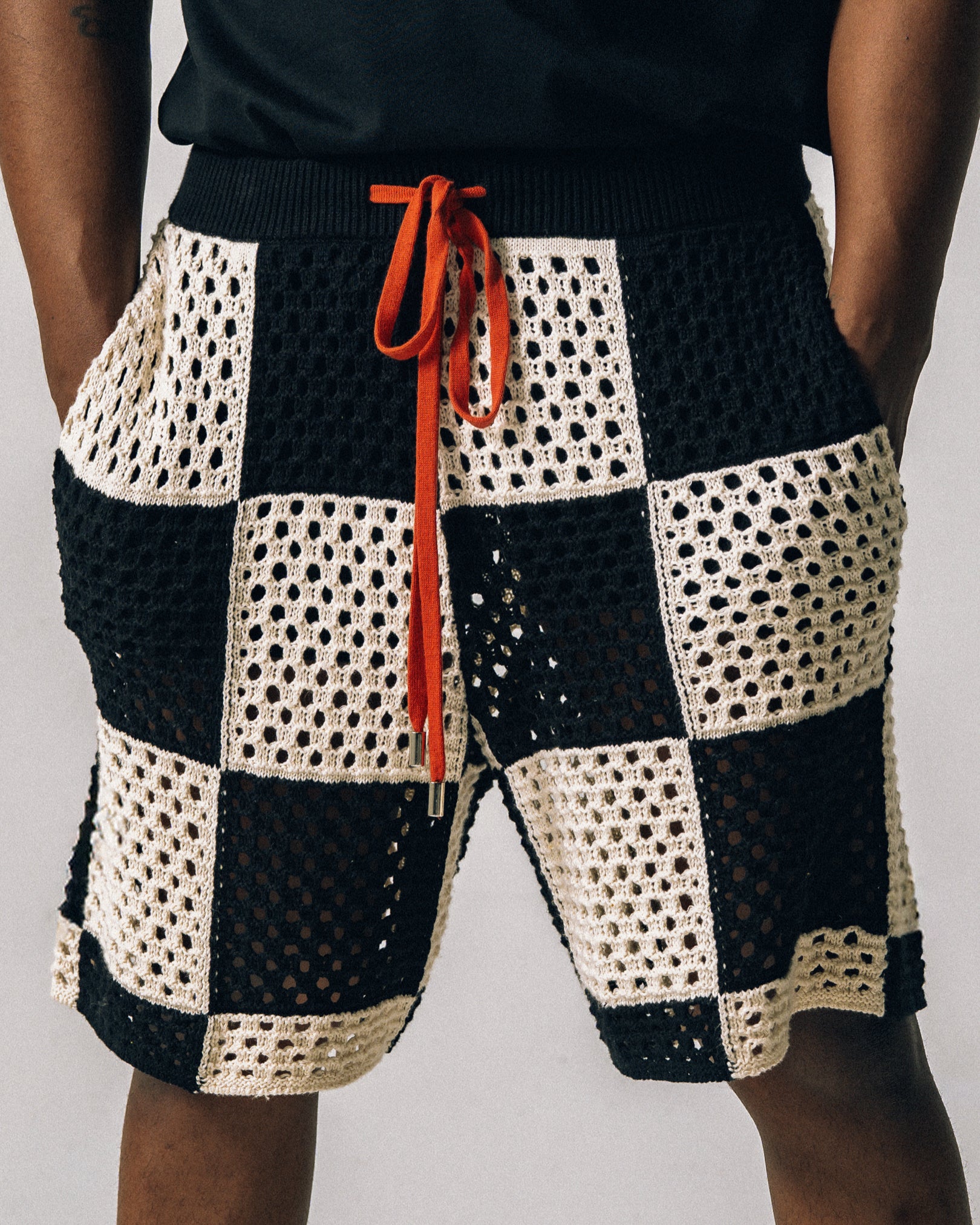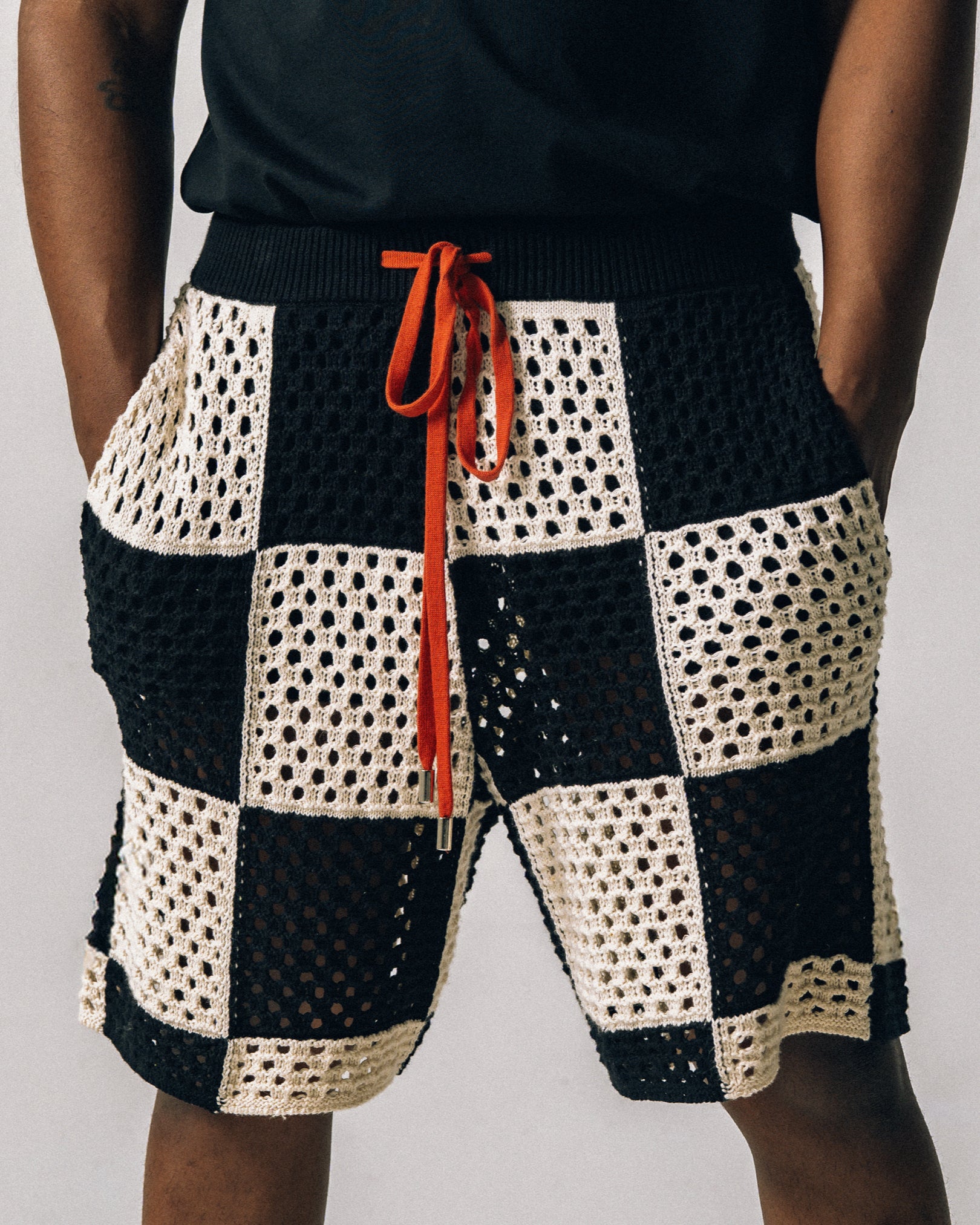 Lightweight, breathable, and built for the heat—this oversized short features a bold checkered pointelle knit for maximum airflow and texture. Finished with a contrasting racing red drawcord, it delivers comfort with just the right hit of energy.