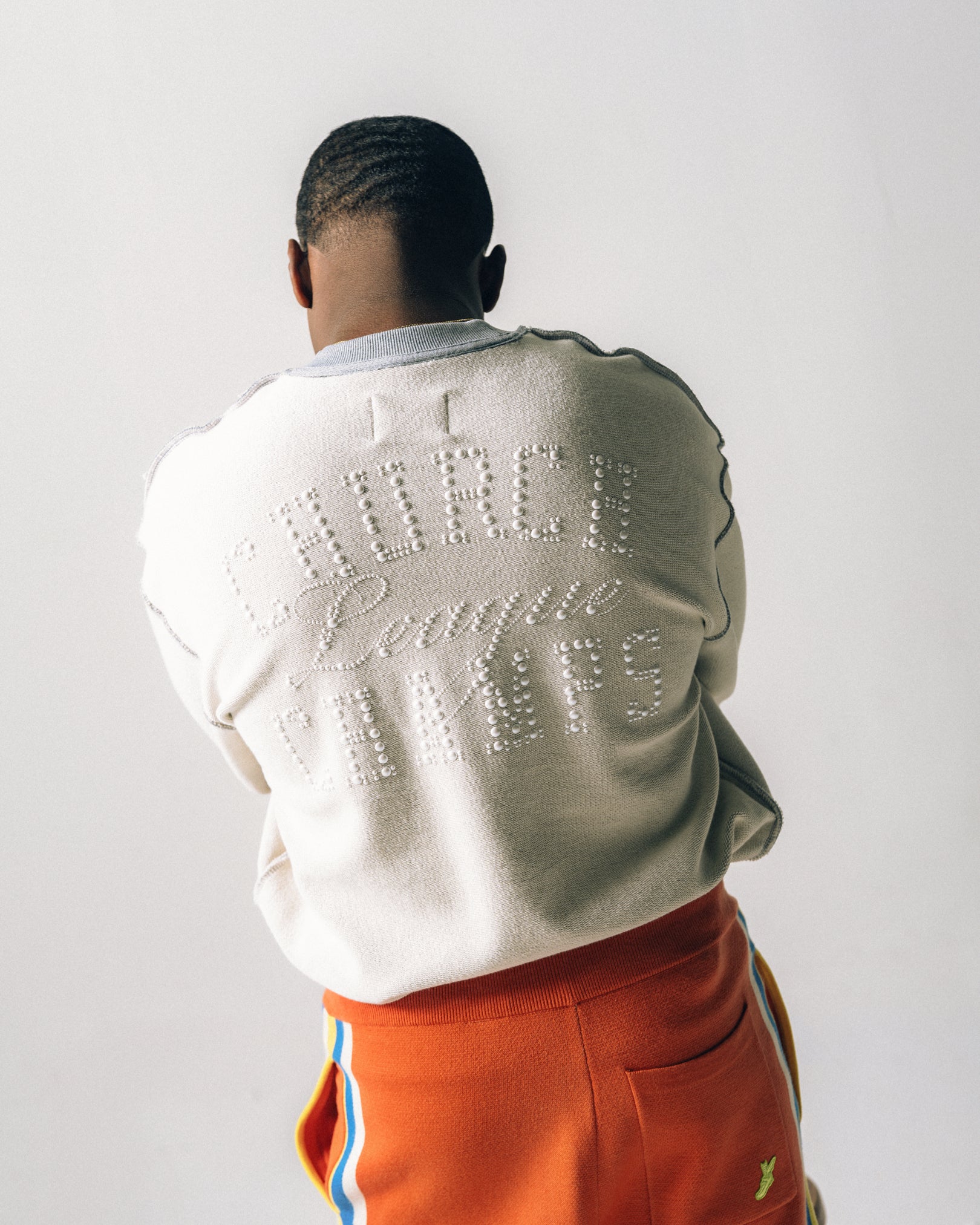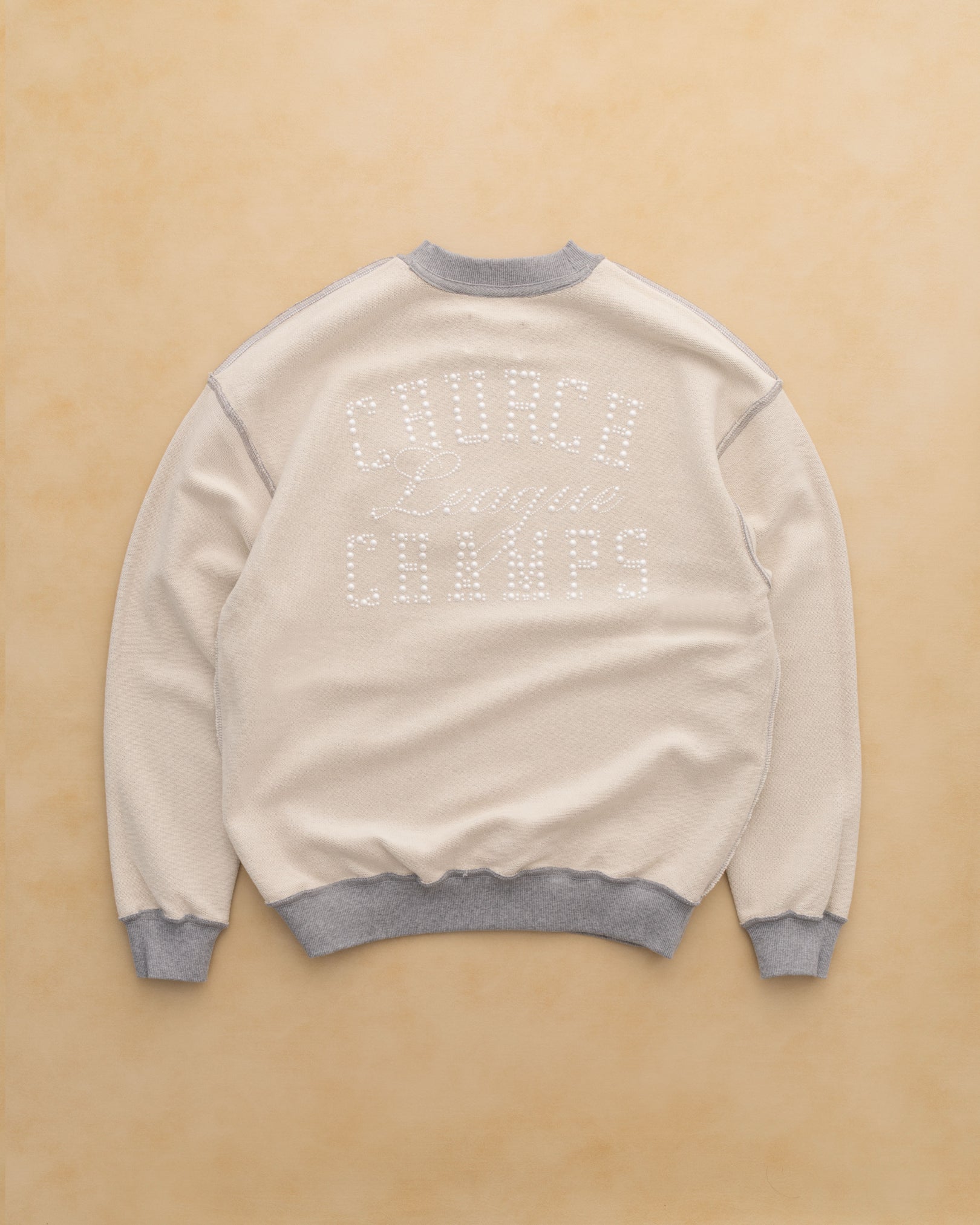 Crafted from heavyweight 14.7 oz French terry, this oversized hoody commands presence with softness and structure. Pearl appliqué detailing nods to the grace and quiet power of the church—the ones who show up draped in elegance, legacy, and undeniable style. A tribute to tradition, reimagined for today.