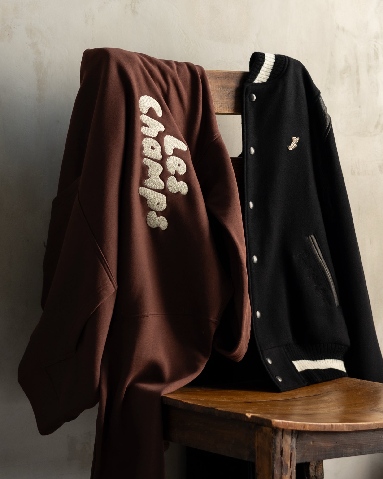 Crafted from an oversized fit, midweight 9.4 oz cotton/poly fleece fabric. Detailed with chain stitch "Les Champs" embroidery