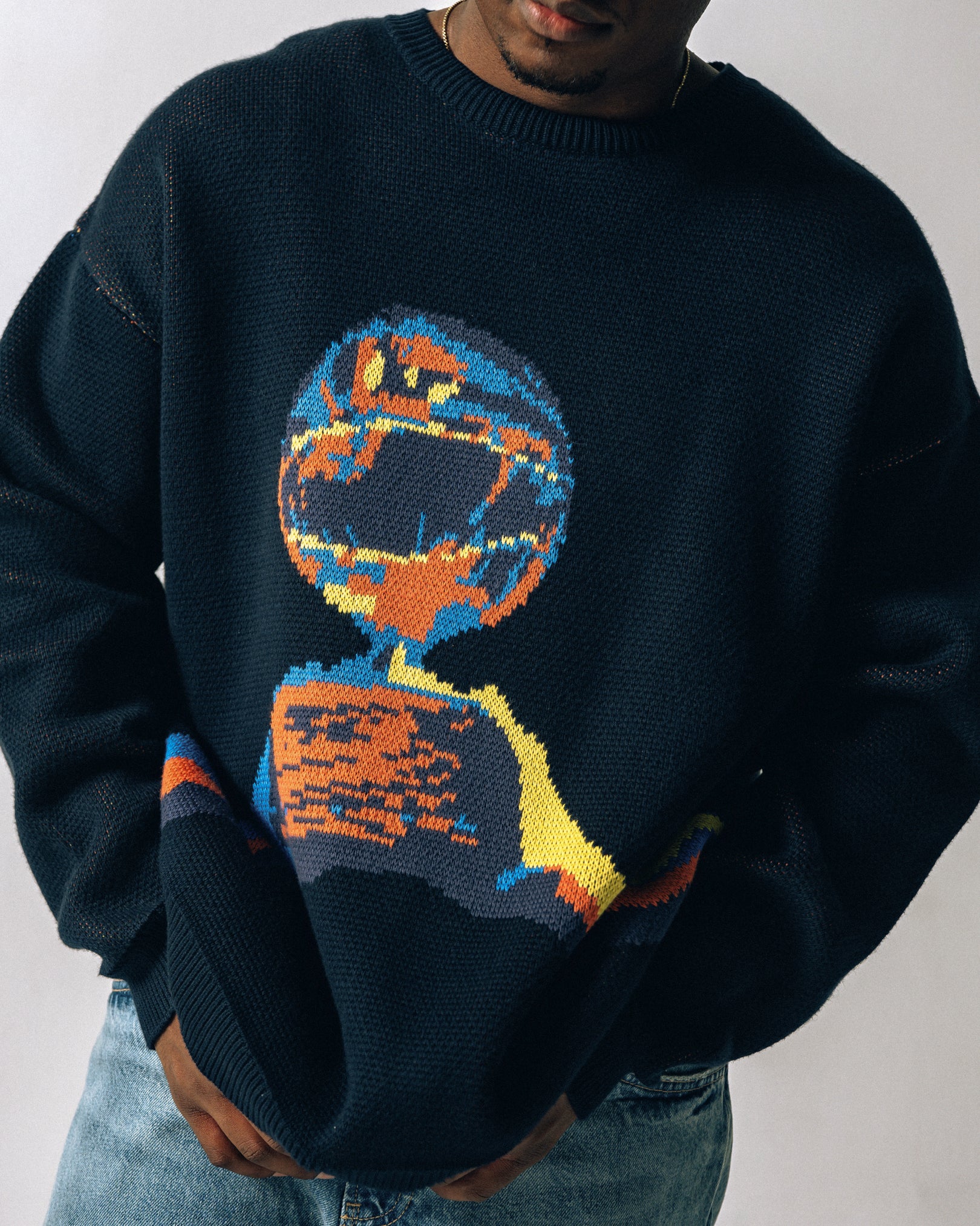 Knit in a 5-gauge jacquard jersey, the Slam Jam Sweater features a bold color-blocked silhouette that commands attention with ease. Chainstitch detailing along the sleeve adds a layer of craftsmanship and texture, while our signature Messenger patch at the back hem roots it in Church League Champions® identity. A modern classic—loud in presence, rich in detail.