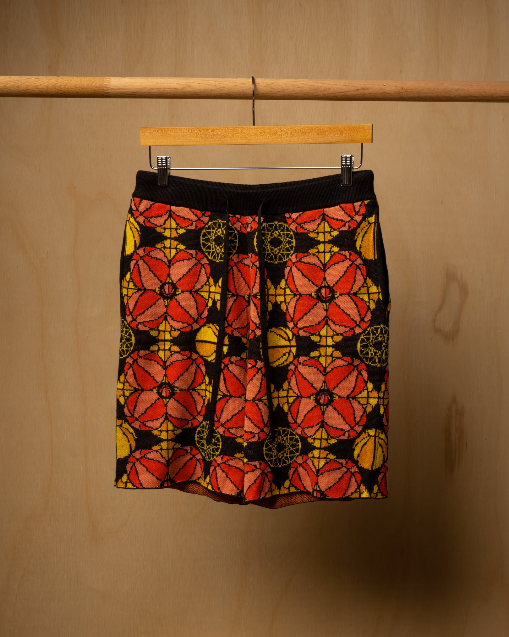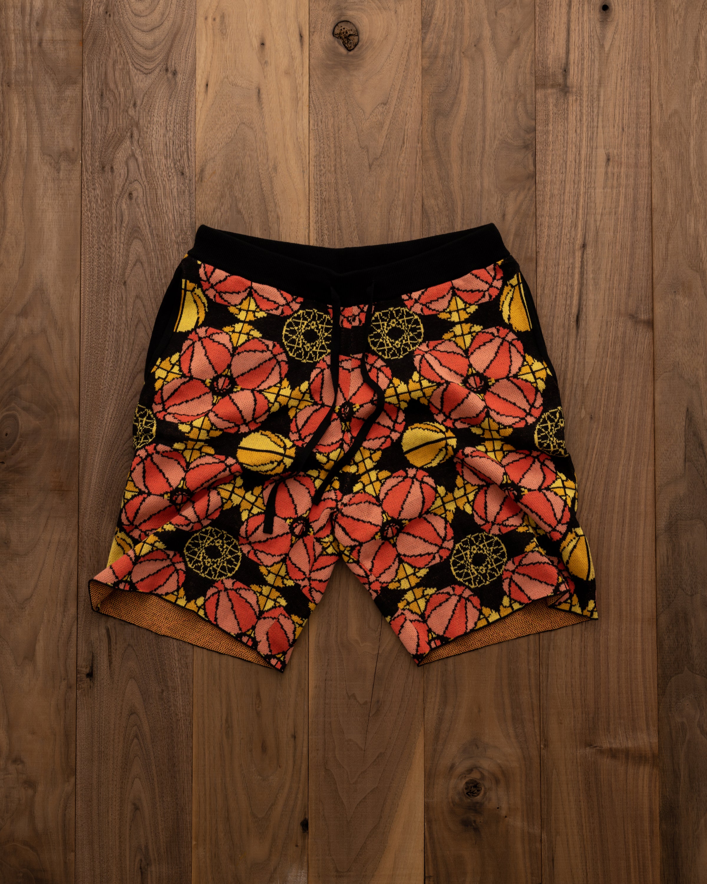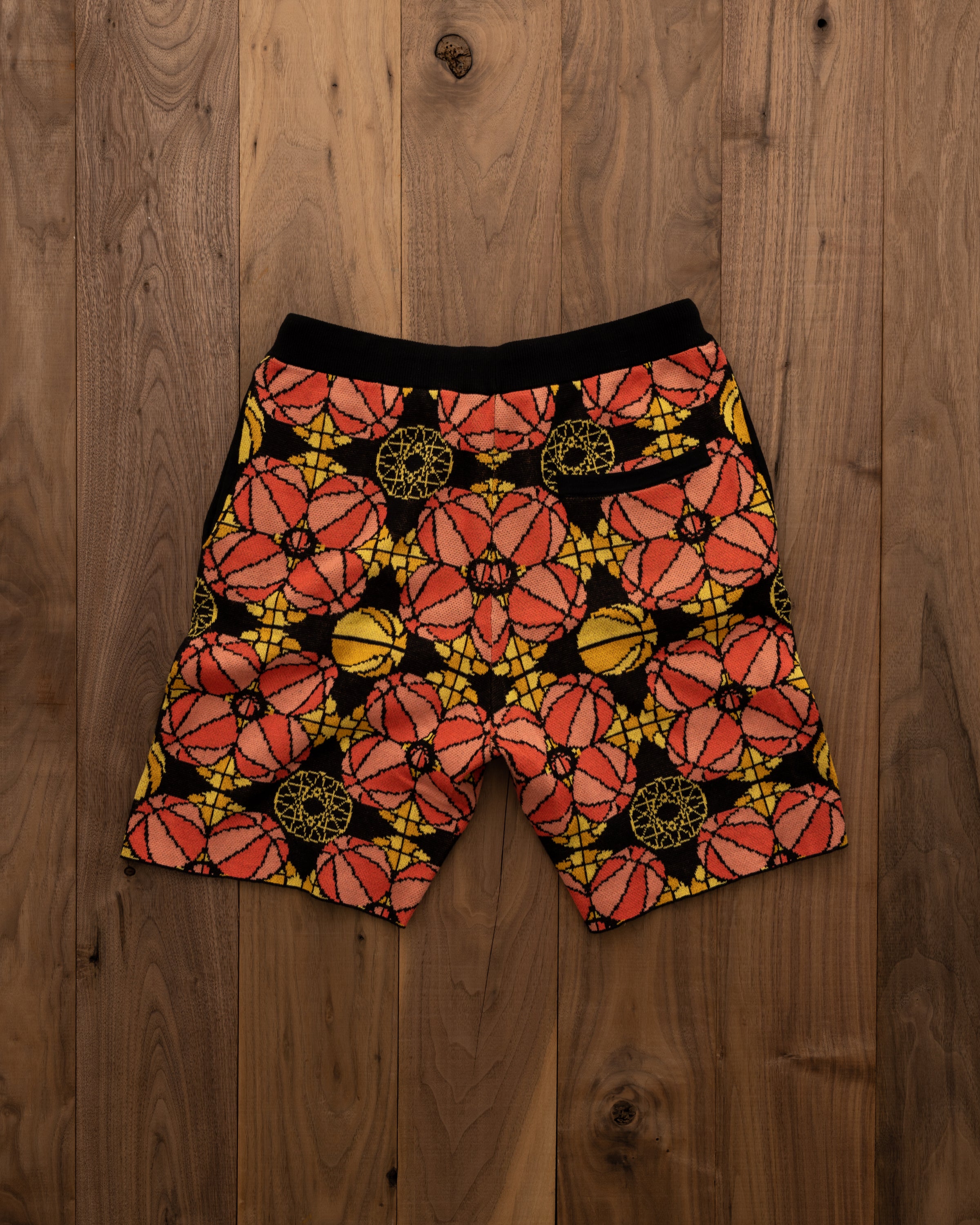 Inspired by the intricate detailing and vibrant palette that decorate the church's stained glass window. These shorts are a reimagined piece of wearable art.