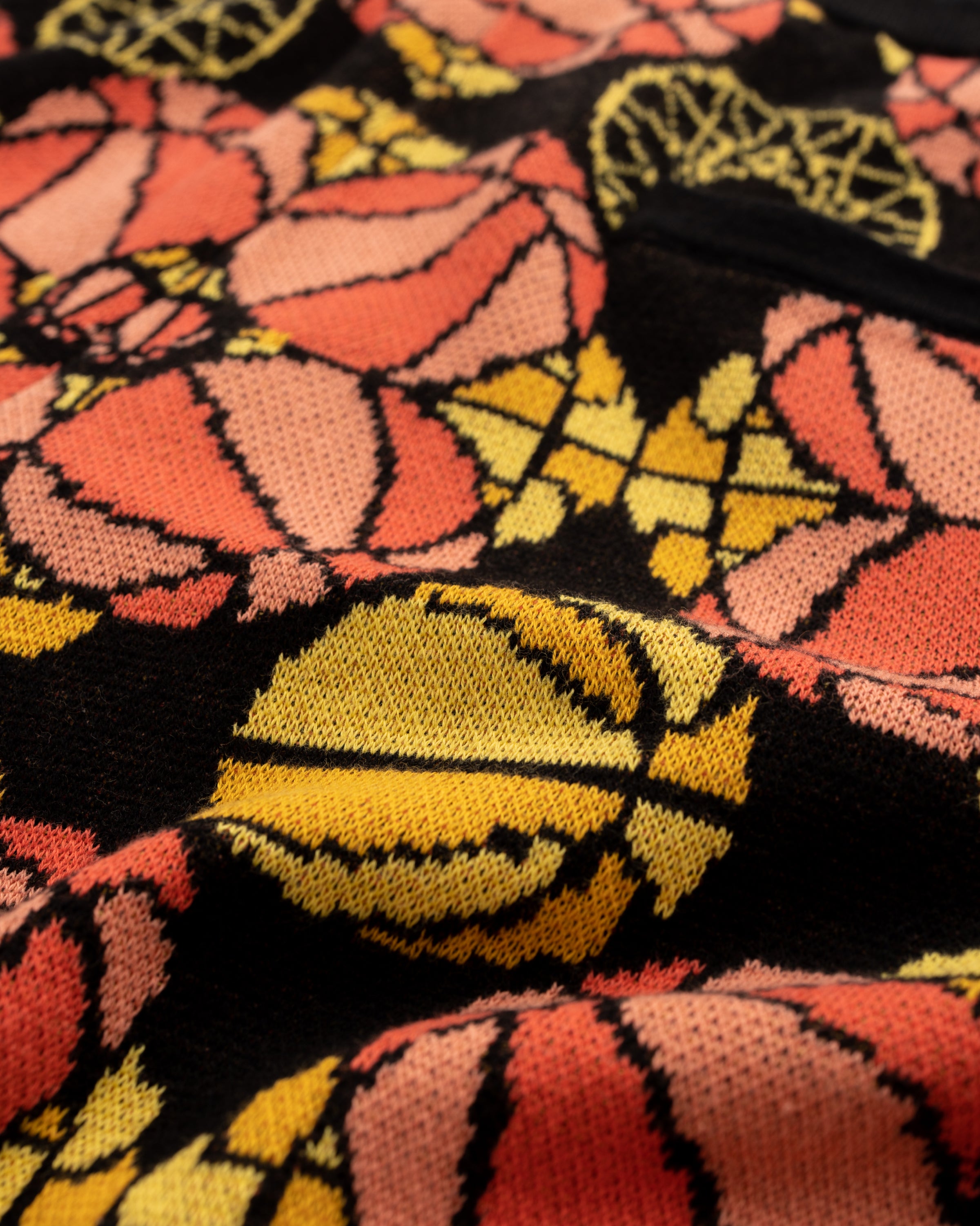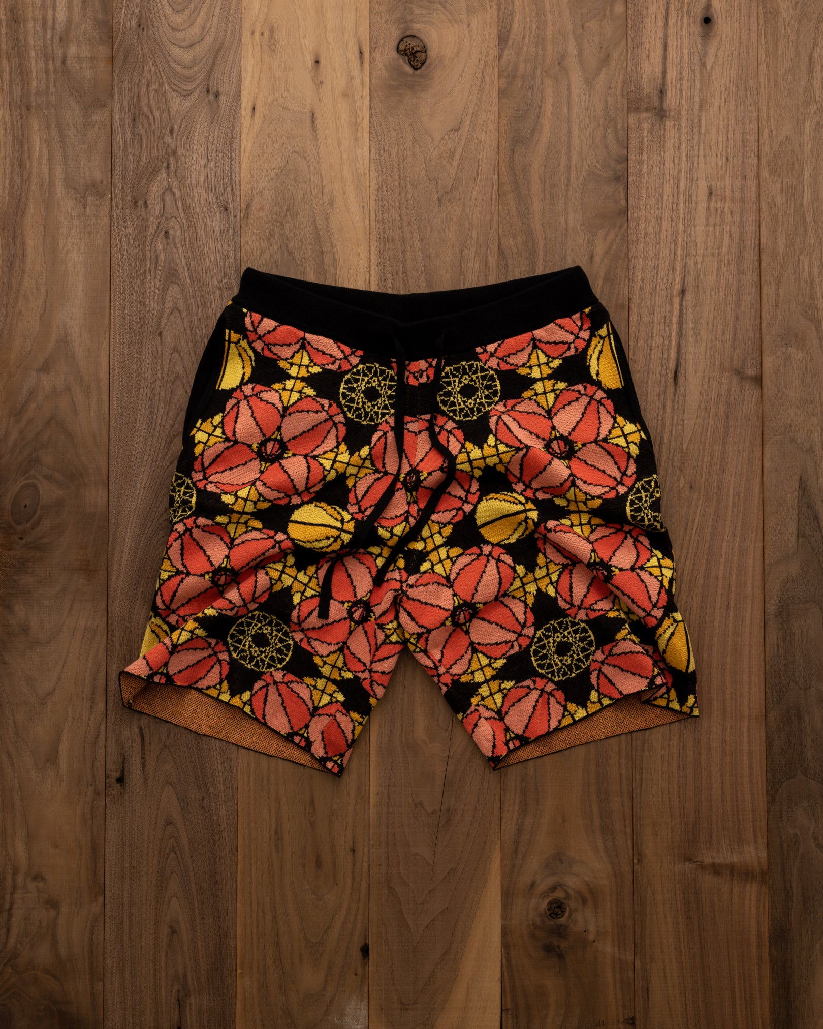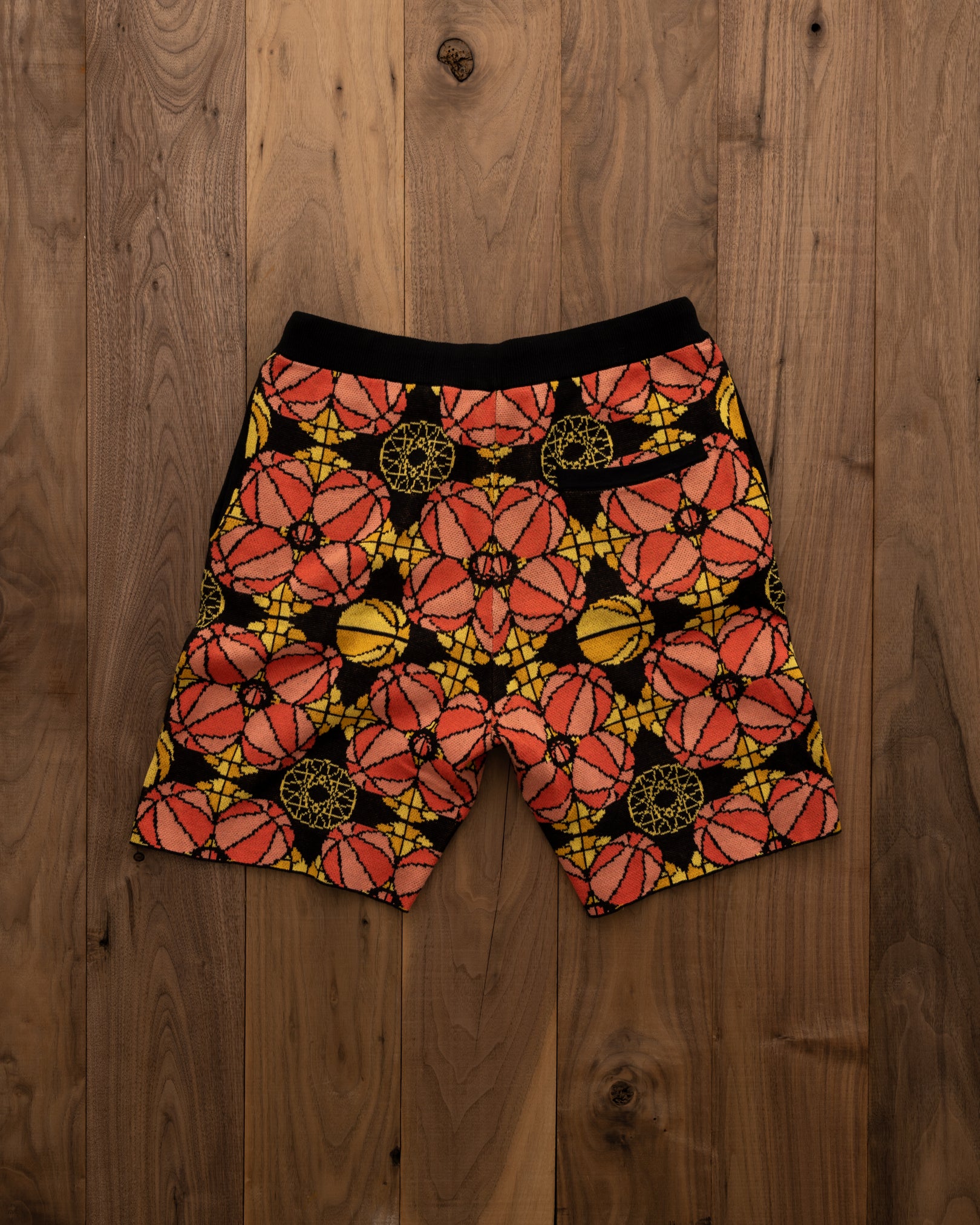 Inspired by the intricate detailing and vibrant palette that decorate the church's stained glass window. These shorts are a reimagined piece of wearable art.