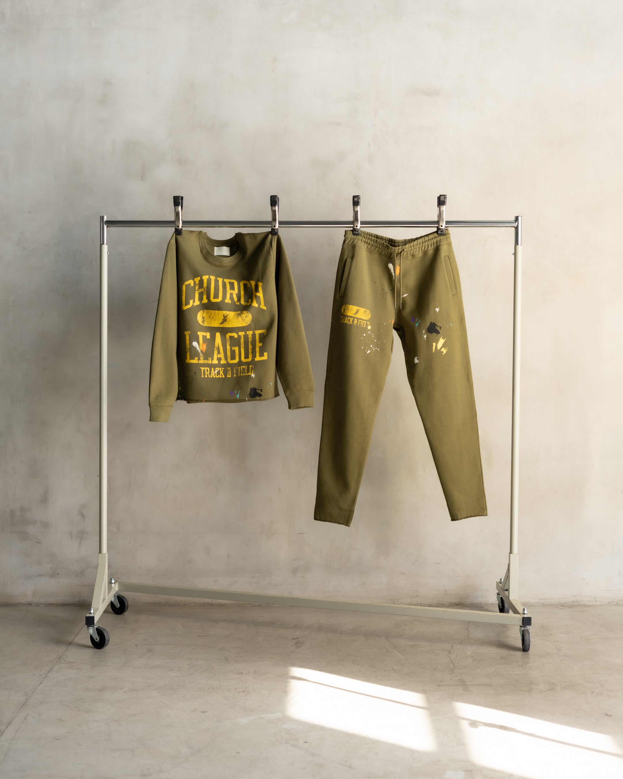 Crafted from heavy 400 gsm cotton fleece, this piece redefines comfort. Aged screen print, and unique paint splatter—a versatile staple for lounging