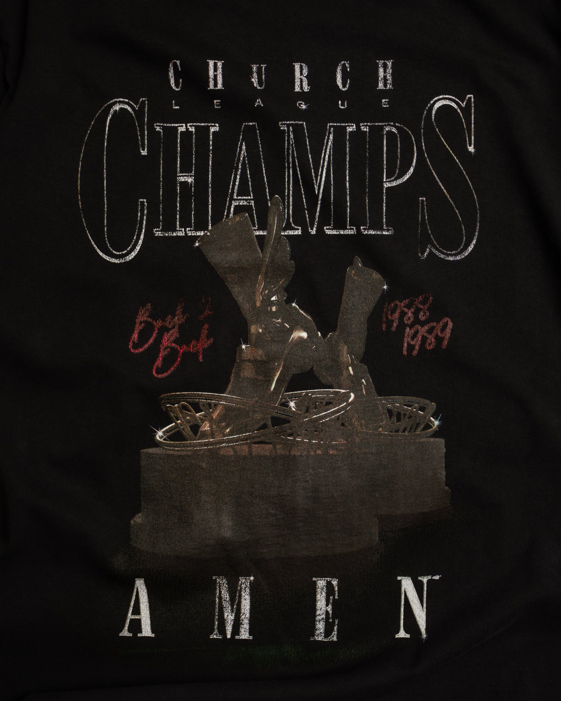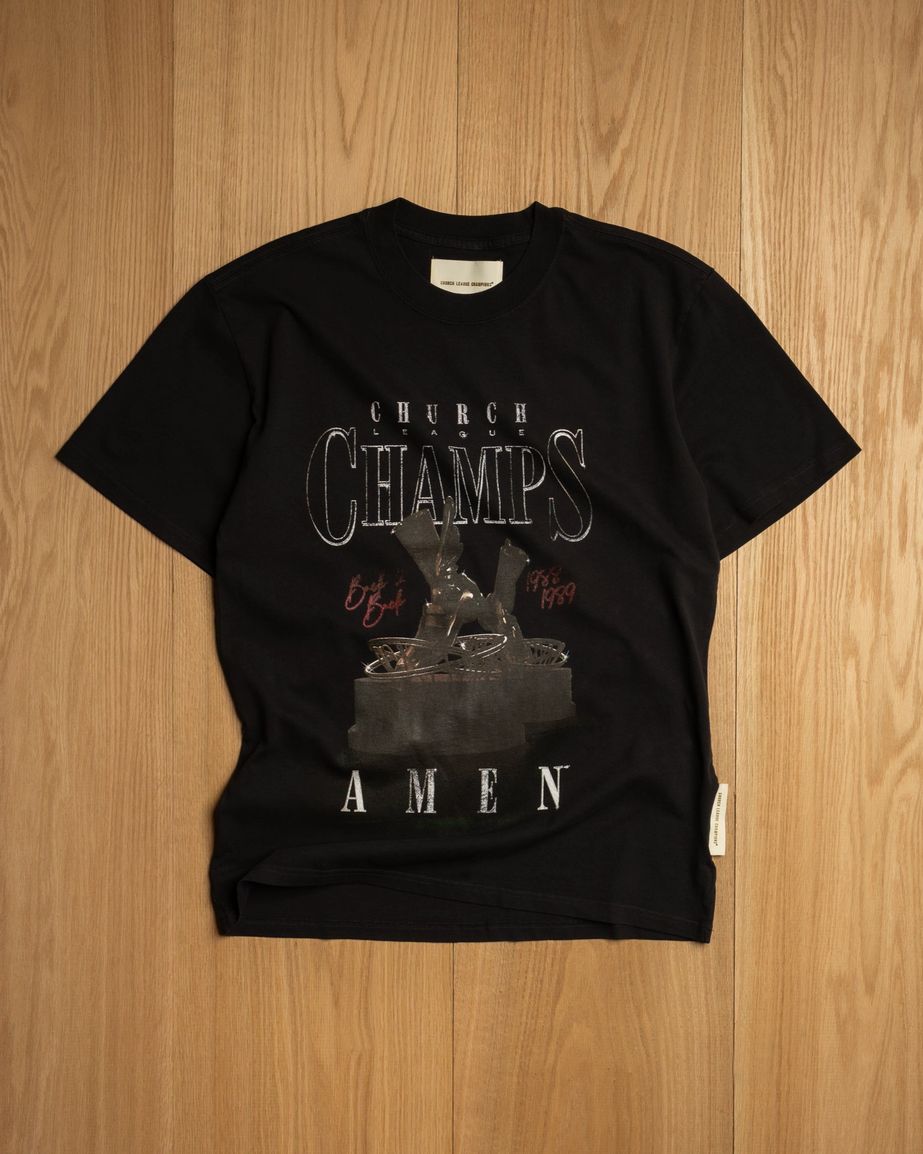 Heavyweight oversize 8.2 oz construction t-shirt with vintage screen print at front and side seam label.
